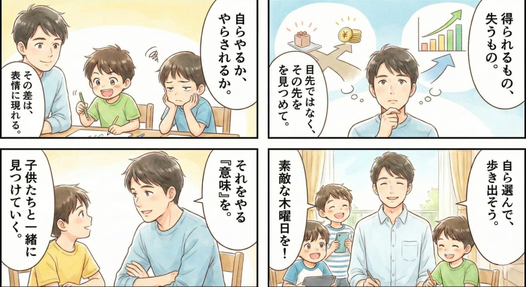 日常 大人息子達意味 2026年1月15日(木) 2026年1月15日 2026年1月15日 26秒 自ら選択してやっているのかやらされているのか。 それだけでこんなに変わるかと息子達を眺めながら。 目先に中長期に。 やったらやらなかったらを想像して。 得られるものに失うもの。 それをやる意味。付け方もまた。 せっかくの機会。子供達と共に。 素敵な木曜日となりますように。 おはようございます。 Facebook postはてブLINEPocketFeedly