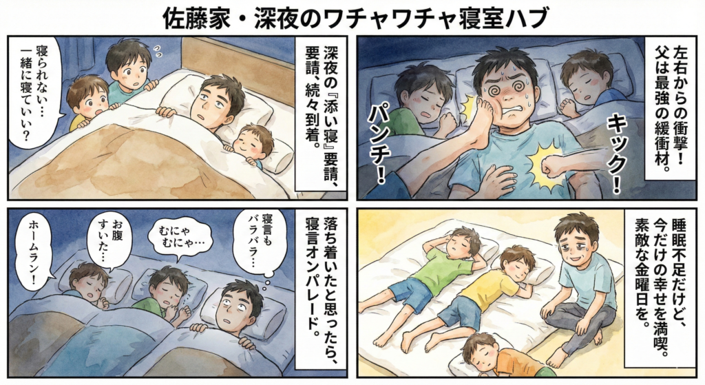昨晩は三男から声が掛かり添い寝も気づけば四男も。