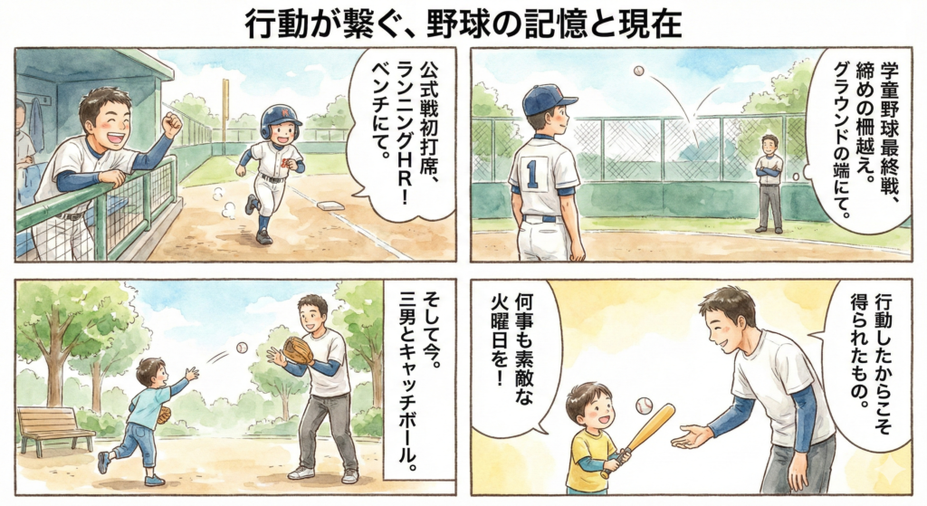 日常 長男行動勇姿 2026年2月24日(火):佐藤家 2026年2月24日 2026年2月24日 26秒 長男の新高学年合同の紅白戦。 公式戦初打席のランニングホームランをベンチにて。 学童野球最終戦の締めの柵越えを眺めるはグラウンドの端っこ。 三男とはキャッチボール。 四男とはバッティングをしながら。 行動したからこそ得られたもの。 何事も。 素敵な火曜日となりますように。 おはようございます。 Facebook postはてブLINEPocketFeedly